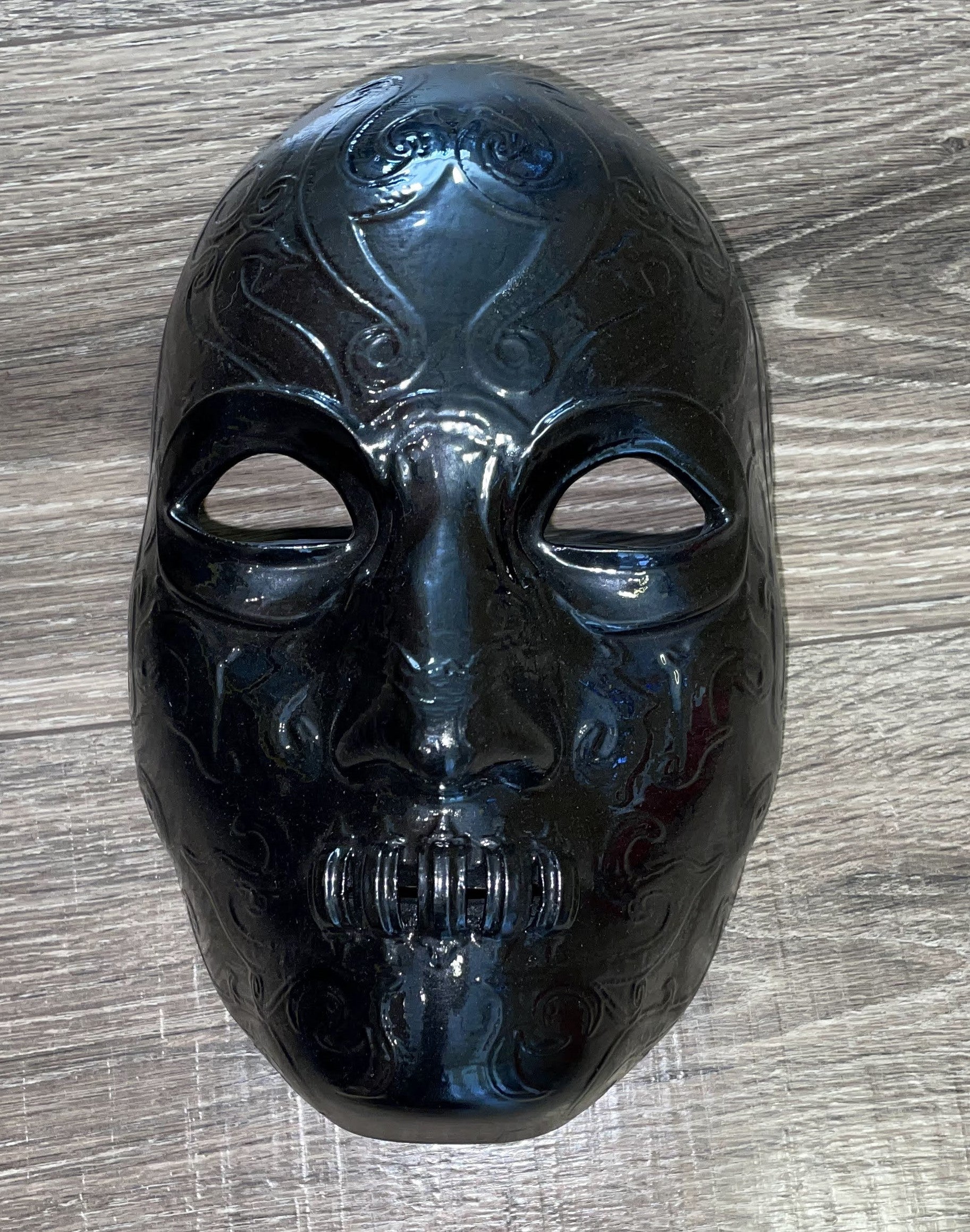 Harry Potter inspired mask, in the vein of the Death Eaters. Hand painted and finished.